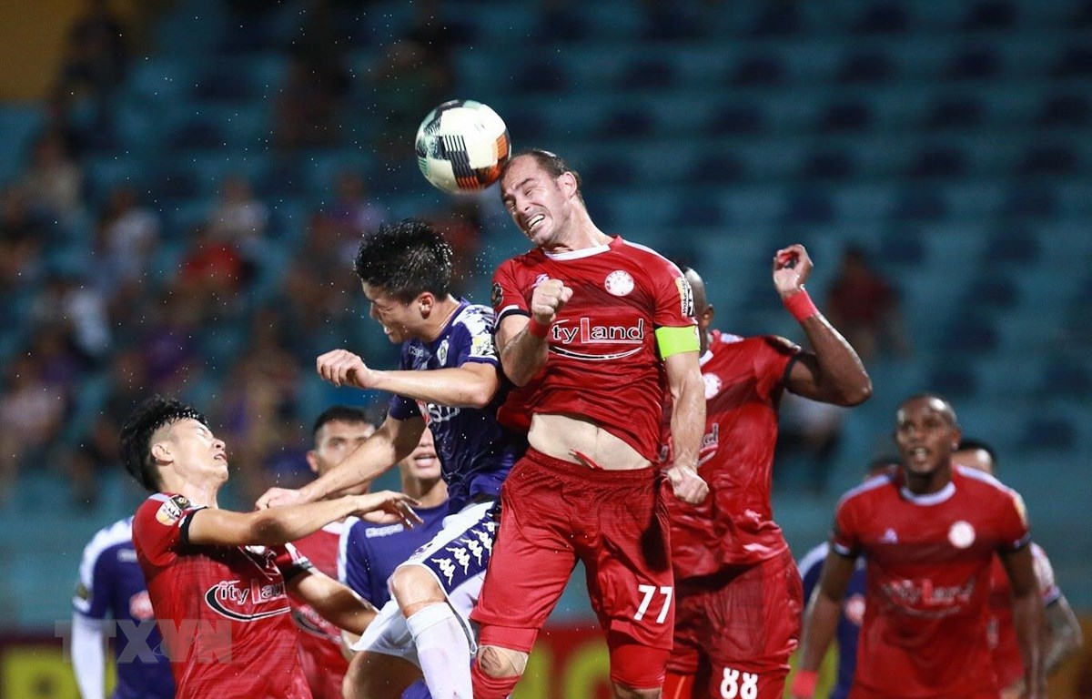 Thành phố Hồ Chí Minh và Hà Nội FC quyết đấu. (Ảnh: Trọng Đạt/TTXVN)