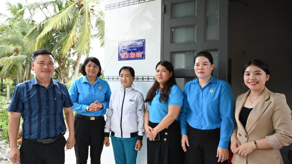 Mái ấm Công đoàn được trao tặng cho chị Nguyễn Thị Mỹ Linh (thứ 3, trái qua)