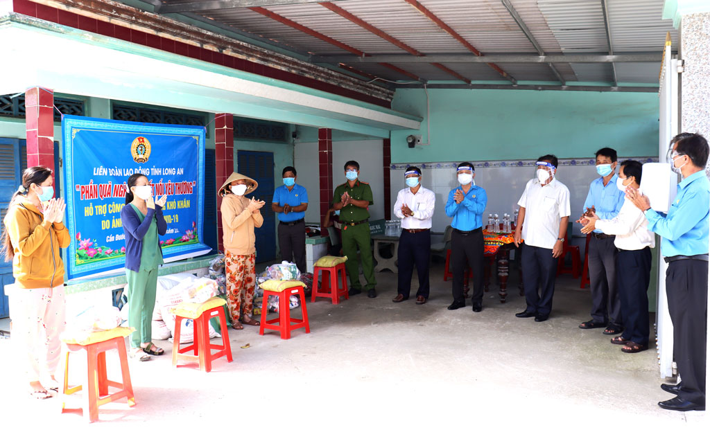 Tại nhà trọ Cẩm Tú, ấp 4, xã Long Định và nhà trọ Trương Lệ Thanh, ấp 3, xã Long Cang, lãnh đạo Liên đoàn Lao động tỉnh, lãnh đạo huyện Cần Đước trao 57 phần quà cho công nhân, lao động có hoàn cảnh khó khăn. Mỗi phần trị giá 250.000 đồng gồm nhu yếu phẩm. Nguồn kinh phí được trích từ Quỹ xã hội từ thiện tấm lòng vàng tỉnh Long An và nguồn ngân sách Công đoàn.