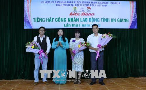 Diễn ra từ ngày 14/8 đến 18/8/2018, Liên hoan Tiếng hát Công nhân lao động tỉnh An Giang lần thứ I năm 2018 thu hút 100 diễn viên không chuyên là công nhân, viên chức, lao động của đến từ 54 công đoàn cơ sở trong các doanh nghiệp trực thuộc Liên đoàn Lao động huyện, thị, thành phố, công đoàn ngành, công đoàn các khu công nghiệp và công đoàn các doanh nghiệp thực thuộc tỉnh An Giang tham gia biểu diễn 80 tiết mục ở thể loại dân ca và ca cổ bao gồm đơn ca, song ca và tốp ca. Các tiết mục tập trung ca ngợi Đảng, Bác Hồ, Bác Tôn; ca ngợi tình yêu quê hương, đất nước, tình đoàn kết của 4 dân tộc Kinh-Hoa-Chăm-Khmer cùng sinh sống trên địa bàn tỉnh An Giang; đặc biệt là ca ngợi về giai cấp công nhân và tổ chức Công đoàn Việt Nam, ca ngợi hình ảnh người lao động ở các ngành, nghề trong sự nghiệp công nghiệp hóa - hiện đại hóa đất nước.