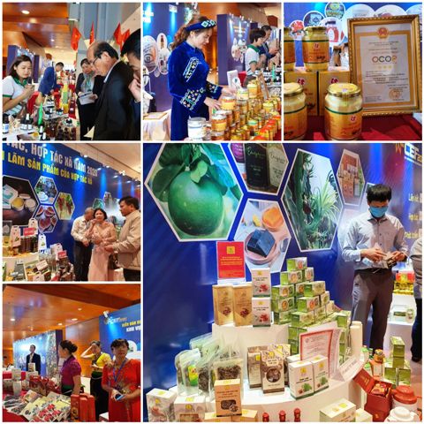 | Các gian hàng trưng bày sản phẩm của một số HTX. (Ảnh: HNV) |