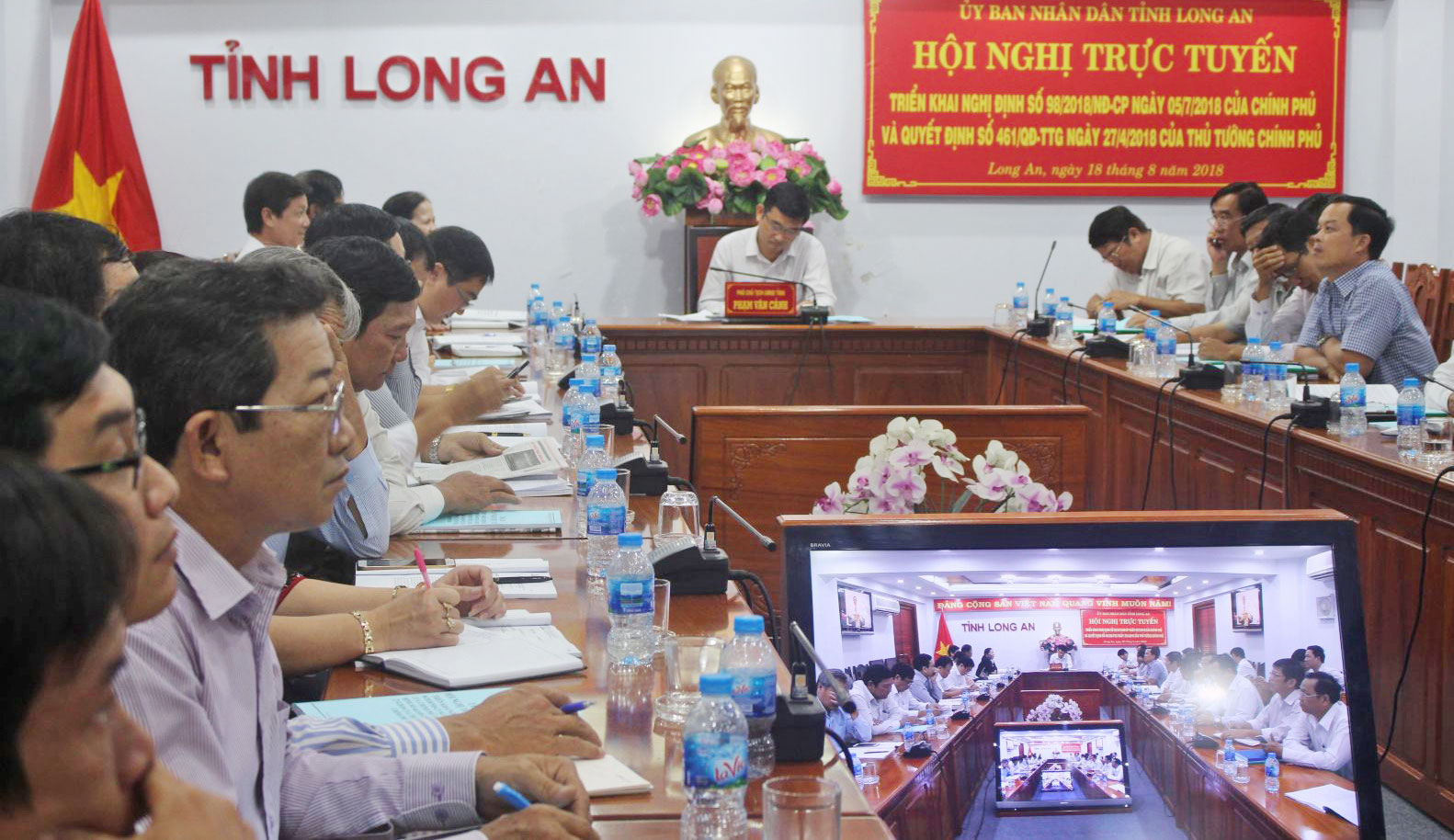Phó Chủ tịch UBND tỉnh – Phạm Văn Cảnh chủ trì hội nghị tại điểm cầu Long An