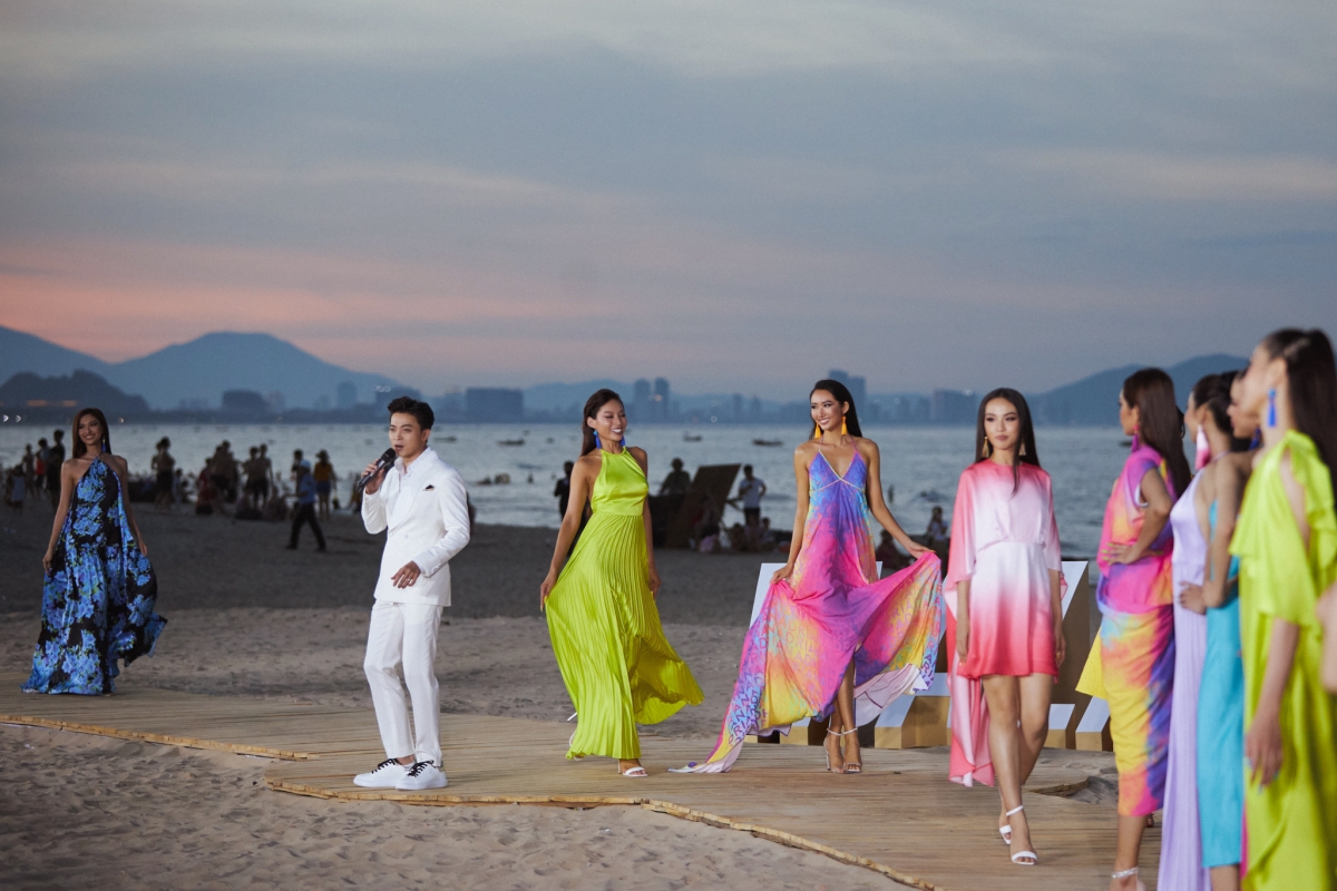 Top 44 Hoa hậu Hoàn vũ Việt Nam 2022 tỏa sáng trên sân khấu Người đẹp biển, tự tin trình diễn BST “Kính vạn hoa” và “Lãng du”. Sải bước trên sấu khẩu vô cực dài đến 99m của Người đẹp biển, top 44 thí sinh Hoa hậu Hoàn vũ Việt Nam đã “đốt cháy” không khí bãi biển Mỹ Khê. Các người đẹp đã thể hiện xuất sắc những bộ trang phục trong BST của 2 NTK với hình thể nóng bỏng và những bước catwalk chuyên nghiệp.