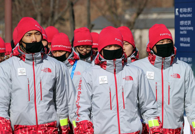Các vận động viên ăn bận "kín mít" trong cái lạnh thấu xương tại PyeongChang, Hàn Quốc - Ảnh: Reuters