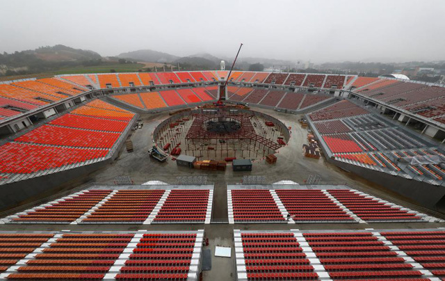 Sân vận động Olympic PyeongChang, nơi sẽ diễn ra lễ khai mạc và bế mạc kỳ thế vận hội, được thiết kế không mái che nhằm rút ngắn thời gian xây dựng. Với điều kiện thời tiết như hiện nay, có thể ban tổ chức sẽ phải hối hận vì quyết định này.