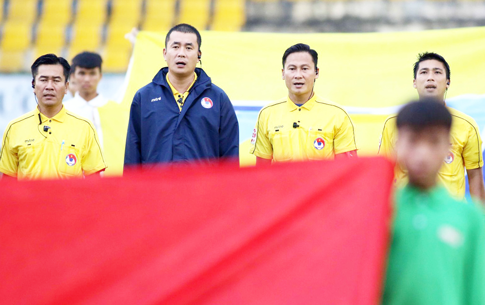 Tổ trọng tài mắc sai lầm nghiêm trọng trận B. Bình Dương – Than Quảng Ninh. Ảnh: ANH HUY