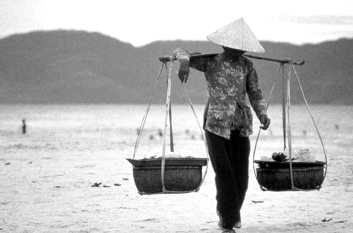 Trời đã nhá nhem tối, người qua lại trên bờ biển cũng thưa dần. Buổi tối trên biển, gió lạnh thổi vào làm người ta không khỏi run rẩy. Một phụ nữ ngồi bần thần bên gánh hàng rong, mắt nhìn ra phía mặt biển tối đen. Bất ngờ, bà đứng dậy, chân trần lững thững đi vào mặt nước.