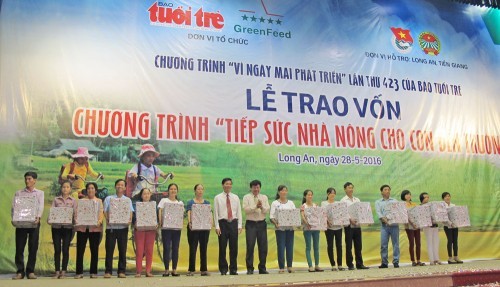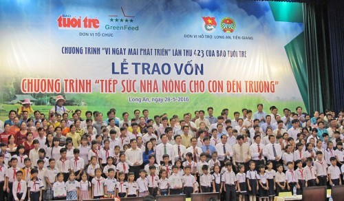 Ngày 28-5-2016, tại hội trường Thống Nhất, tỉnh Long An, Báo Tuổi trẻ và Công ty CP GreenFeed Việt Nam cùng Hội Nông dân, Tỉnh đoàn Long An phối hợp tổ chức lễ trao vốn chương trình “Tiếp sức nhà nông cho con đến trường” cho 120 hộ nông dân của 2 tỉnh Long An, Tiền Giang. Lãnh đạo HĐND, UBND, UBMTTQ tỉnh Long An, các địa phương, các ngành liên quan của 2 tỉnh đã đến dự.