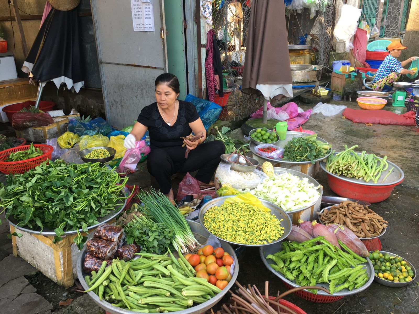 Đi kèm với cá linh, các loại rau đặc sản mùa nước nổi cũng dồi dào tại các chợ