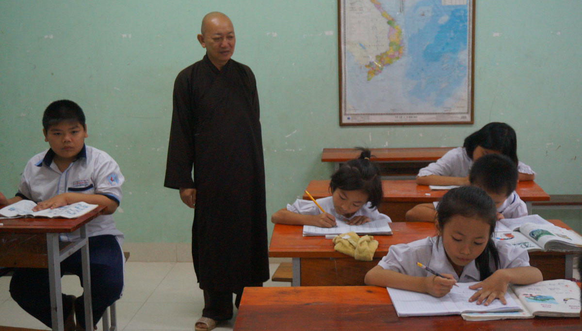 Theo Thượng tọa Thích Quảng Tâm - trụ trì chùa Long Thạnh, nhiều thầy, cô giáo dù còn đang giảng dạy hay nghỉ hưu đều tình nguyện mang tâm sức để giảng dạy, giáo dục các em trở thành những trò ngoan, những công dân có ích cho xã hội.