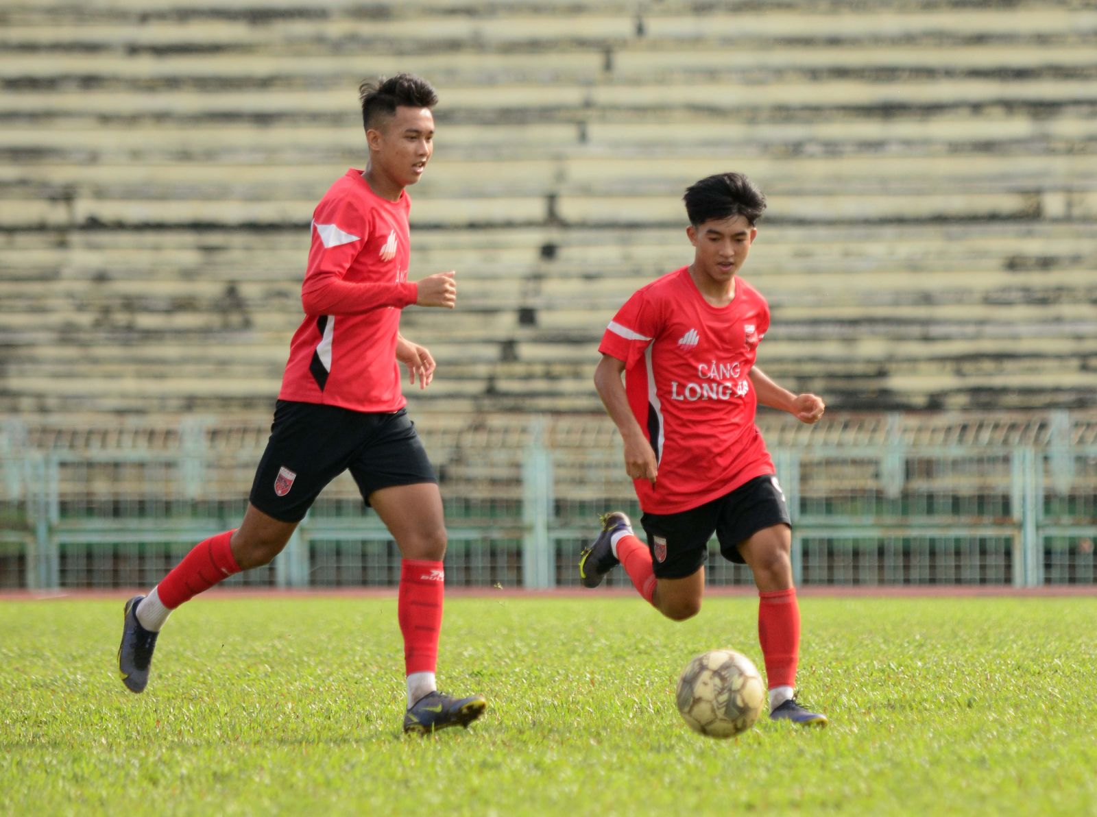 Các cầu thủ U21 Long An tập luyện chuẩn bị cho giải
