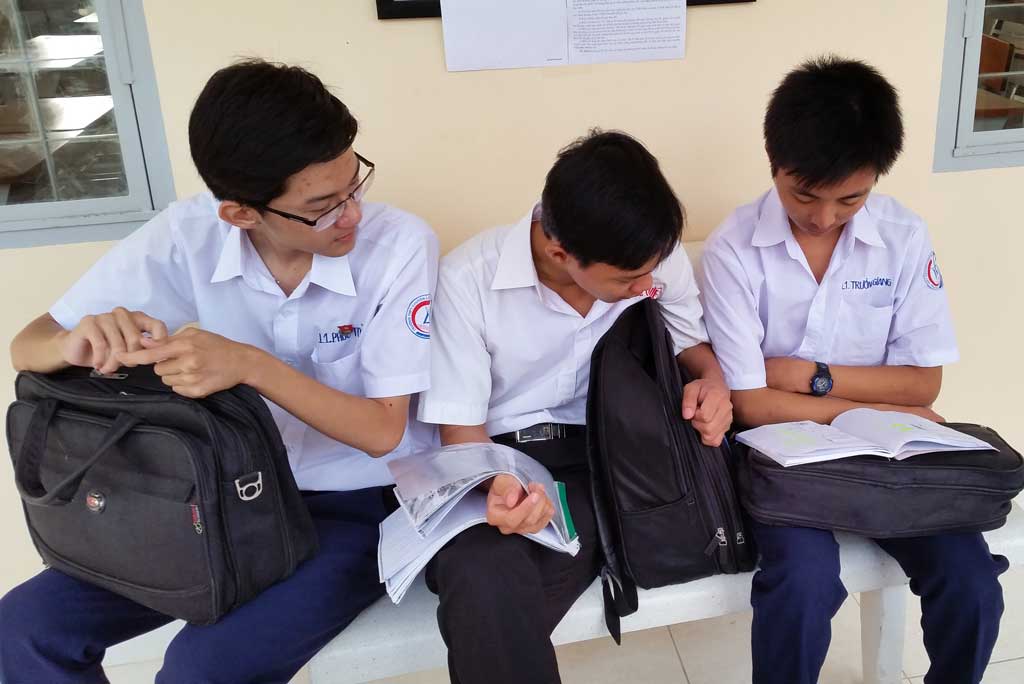 Thí sinh cùng trao đổi, xem lại bài trước khi vào phòng thi