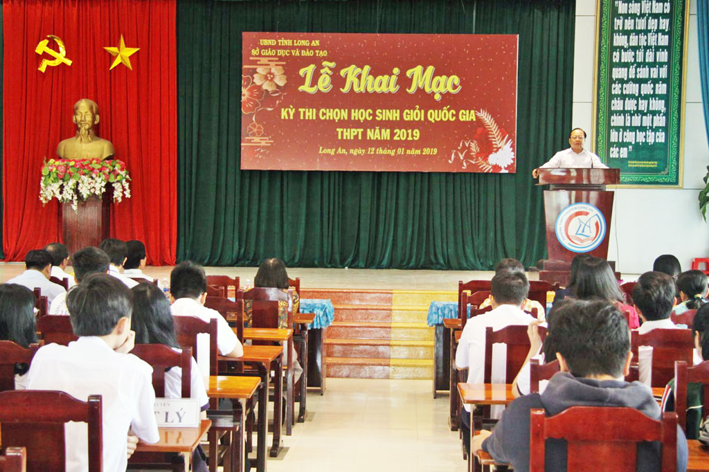 Phó Giám đốc Sở Giáo dục và Đào tạo tỉnh Long An - Huỳnh Thanh Phong động viên và gửi lời chúc các thí sinh