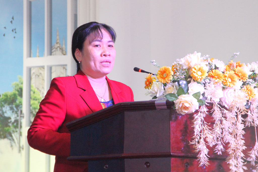 Phó Giám đốc Sở Nông nghiệp và Phát triển nông thôn - Hồ Thị Ngọc Lan phát biểu tại hội nghị
