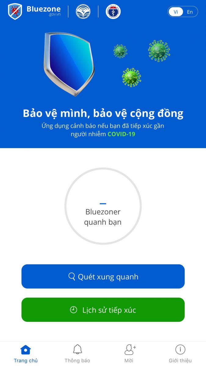 Giao diện ứng dụng Bluezone