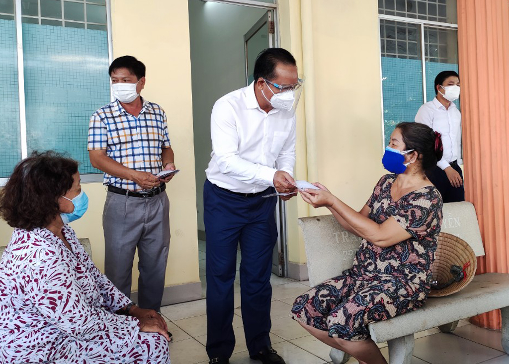 Bí thư Tỉnh ủy, Chủ tịch HĐND tỉnh - Nguyễn Văn Được trao tiền hỗ trợ cho đối tượng bị ảnh hưởng bởi dịch Covid-19
