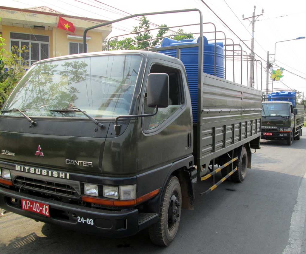 Bộ Chỉ huy Quân sự tỉnh huy động xe chở nước cho dân Ảnh: Long Hải