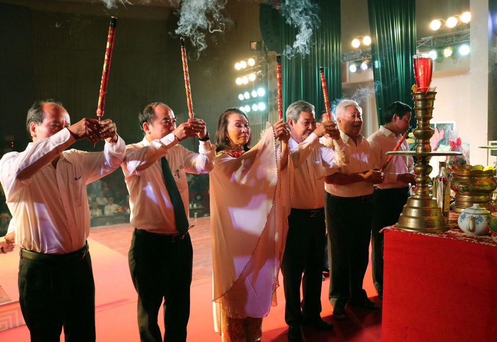 Lãnh đạo tỉnh và các nghệ sĩ thắp hương trong ngày Kỷ niệm Giỗ tổ Sân khấu