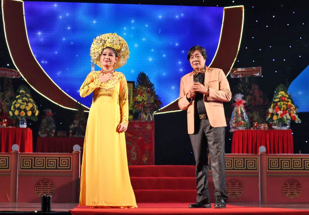 Nghệ sĩ Nhân dân Trọng Hữu và Nghệ sĩ Ưu tú Hồ Ngọc Trinh biểu diễn tại lễ kỷ niệm