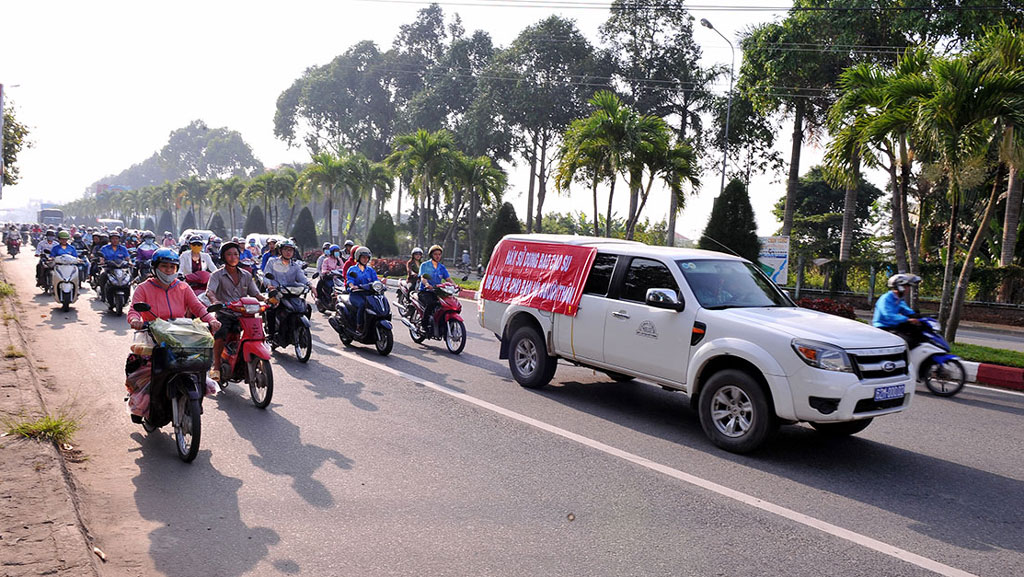 Tại lễ mít tinh, gần 500 đại biểu là cán bộ, nhân viên y tế, đoàn viên thanh niên, học sinh tham gia tuần hành tuyên truyền thông điệp hưởng ứng Ngày Thế giới phòng, chống AIDS trên các trục đường chính của TP.Tân An.