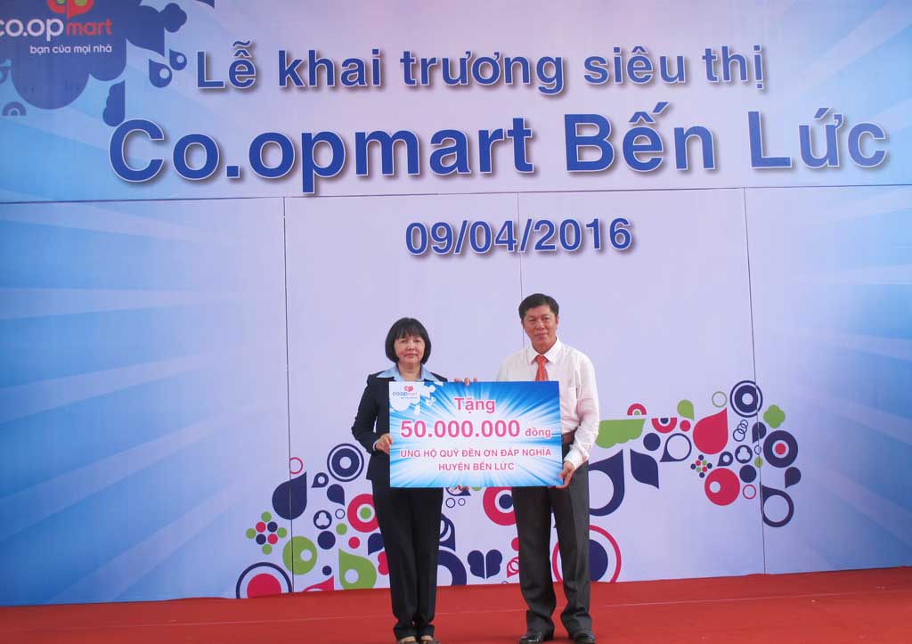 Nhân dịp khai trương, Co.opmart Bến Lức thực hiện nhiều chương trình khuyến mãi lớn; đồng thời tặng 50 triệu đồng cho quỹ Đền ơn đáp nghĩa huyện Bến Lức./.