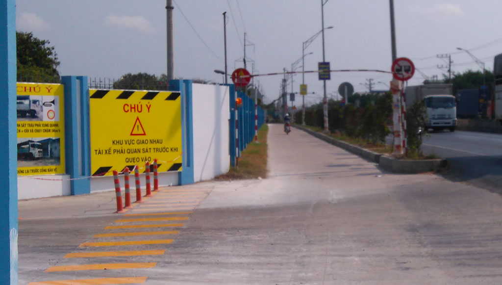 Hàng cây phía trước cổng Cty TNHH LAVIE che khuất tầm nhìn nên rất dễ xảy ra tai nạn giao thông khi xe tải rẽ vào Cty giao nhận hàng. Vì ngay sau hàng cây là đường dân sinh...