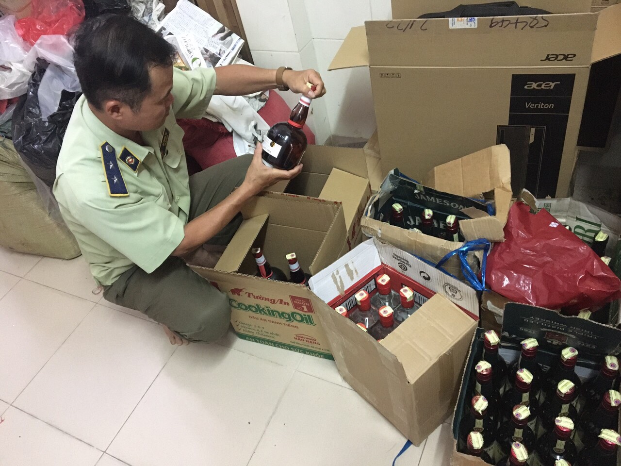Triển khai kế hoạch cao điểm kiểm tra, kiểm soát thị trường, phòng, chống buôn lậu, gian lận thương mại, hàng giả trước, trong và sau Tết Nguyên đán Canh Tý 2020. Ngày 14/01/2020, qua công tác quản lý địa bàn và nguồn tin cung cấp từ cơ sở, Đội Quản lý thị trường số 8 phân công Đoàn công tác mật phục trên tuyến Quốc lộ 62, thuộc địa bàn xã Thủy Tây, huyện Thạnh Hóa. Đến 13 giờ, phát hiện 60 chai rượu do nước ngoài sản xuất, gồm: 12 chai Beefeater London loại 750ml, 12 chai Midori loại 700ml, 24 chai Jemeson loại 700ml, 12 chai Grand Marnier loại 700ml được tập kết ven quốc lộ 62 nhưng không có người nhận. Đoàn công tác lập biên bản tạm giữ toàn bộ tang vật vi phạm đưa về Đội Quản lý thị trường số 8 xác minh, xử lý theo quy định pháp luật.