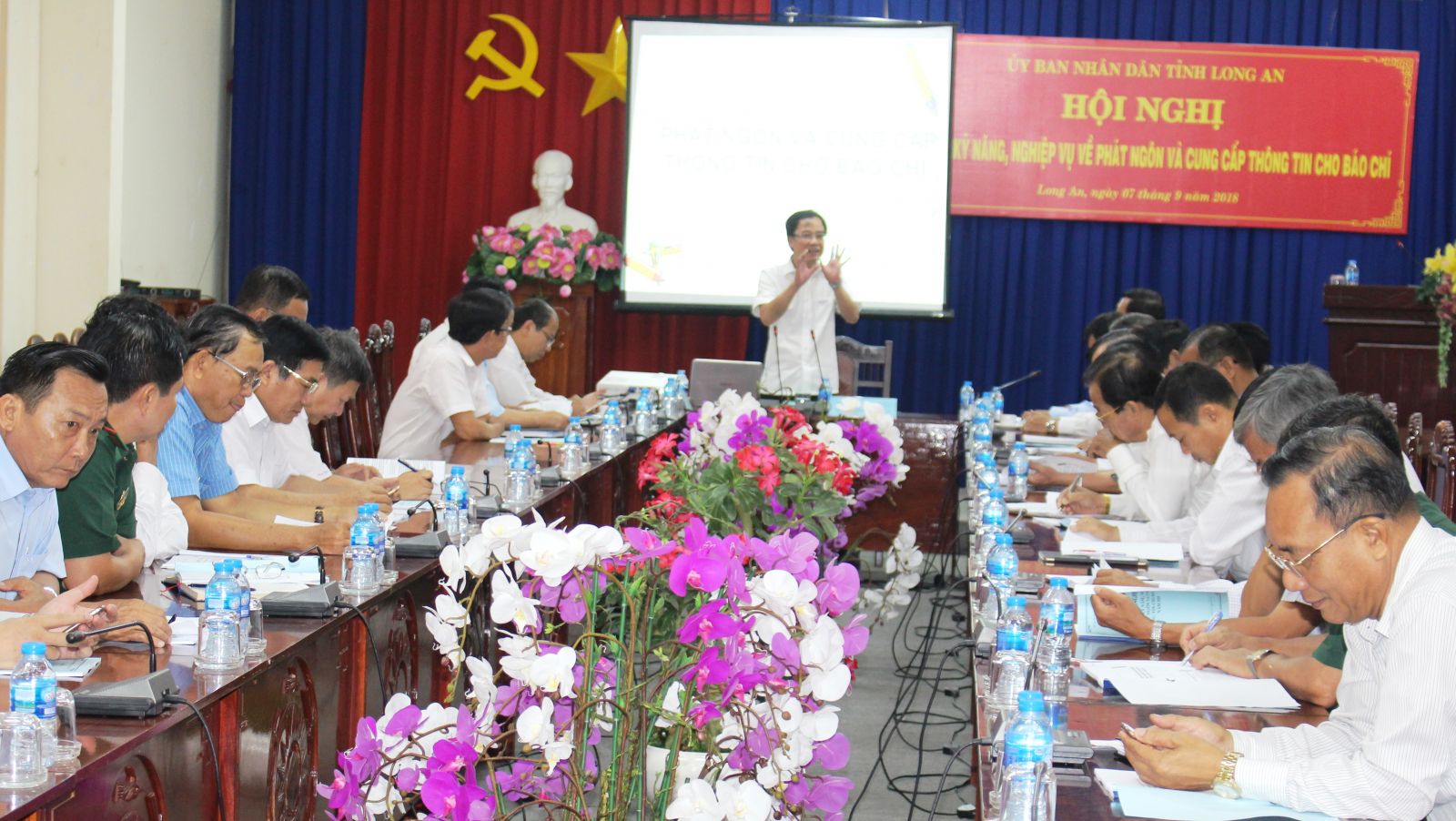 Ngày 7/9, UBND tỉnh Long An tổ chức tập huấn kỹ năng, nghiệp vụ về phát ngôn và cung cấp thông tin cho báo chí năm 2018 cho người phát ngôn UBND tỉnh, thủ trưởng các sở, ngành và Chủ tịch UBND các huyện, thị xã, thành phố trên địa bàn tỉnh Long An.