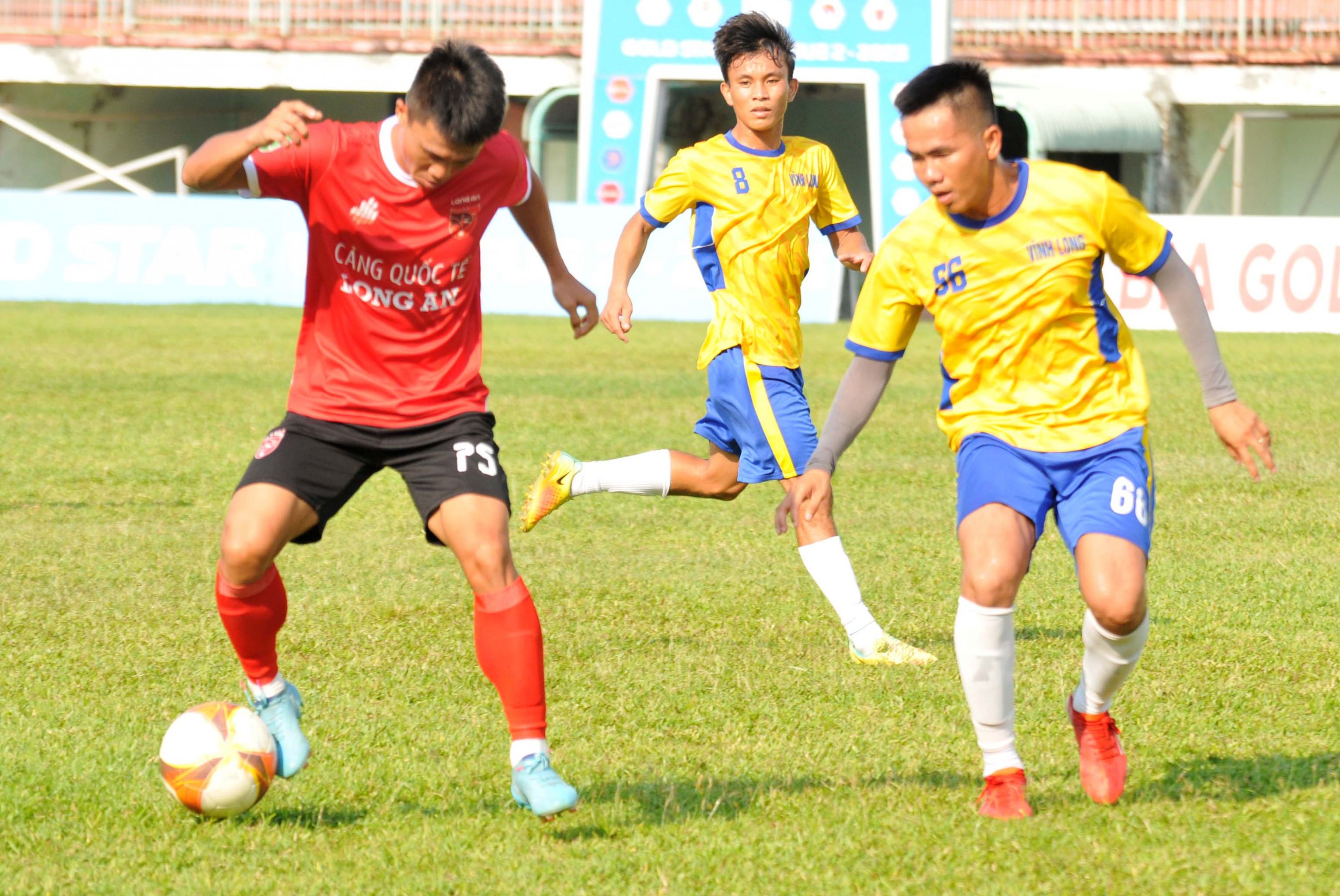 Bước vào trận đấu, cả hai đội đều nhập cuộc rất nhanh với các tình huống tấn công dồn dập. Ngay phút thứ 3, đội bóng Vĩnh Long có cơ hội đầu tiên. Hoàng Nam nhận bóng trong vòng cấm tung cú sút quyết đoán vào góc gần nhưng thủ môn Trường Long kịp khép góc cứu thua cho đội bóng Long An.