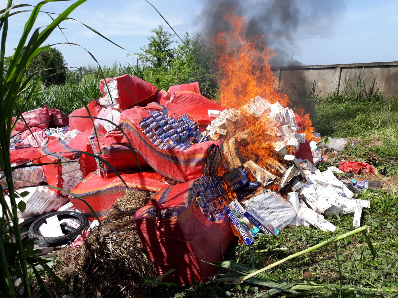 Long An: Tiếp tục tiêu hủy thuốc lá nhập lậu