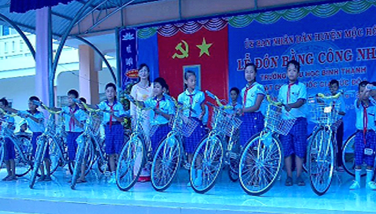 UBMTTQ Việt Nam tỉnh vận động mạnh thường quân tặng xe đạp cho học sinh nghèo Trường Tiểu học Bình Thạnh, huyện Mộc Hóa