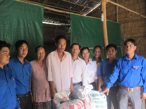 Các bạn đoàn viên, thanh niên đến thăm, trao quà cho gia đình bà Tài