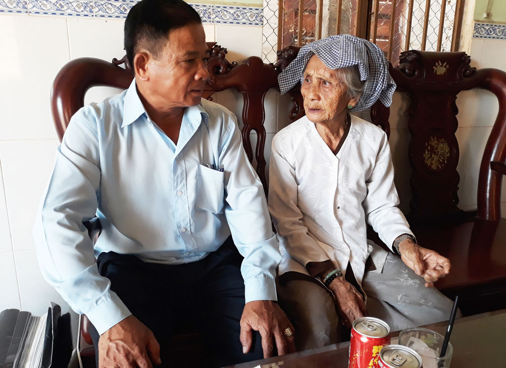 Ngày cao tuổi, chút niềm vui của bà Hoa là được địa phương đến thăm, chúc Tết (Trong ảnh: Phó Chủ tịch UBND xã Long Định - Hồ Văn Cơ đến thăm bà Hoa)