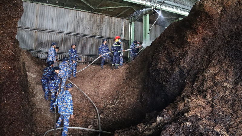 Kíp trực Sở Chỉ huy Lữ đoàn đã hội ý, triển khai phương án; tổ chức lực lượng, phương tiện để phối hợp với nhà máy và công an PCCC huyện Cam Lâm tổ chức chữa cháy. Lực lượng, phương tiện tham gia gồm 67 đồng chí, 01 xe chỉ huy; 01 xe cứu hỏa, 01 xe cứu thương, 01 xe ca, do Đại tá Bùi Đình Dương, Phó Lữ đoàn trưởng và đồng chí Thượng tá Nguyễn Văn Tạo, Phó Chính uỷ Lữ đoàn trực tiếp chỉ huy. Lực lượng, phương tiện của Lữ đoàn nhanh chóng có mặt tại hiện trường triển khai trang thiết bị, phối hợp Công an PCCC huyện Cam Lâm tiến hành chữa cháy. Với tinh thần tích cực, khẩn trương, đến 16h30' cán bộ, chiến sỹ Lữ đoàn đã cùng với lực lượng địa phương khống chế và dập tắt hoàn toàn đám cháy.