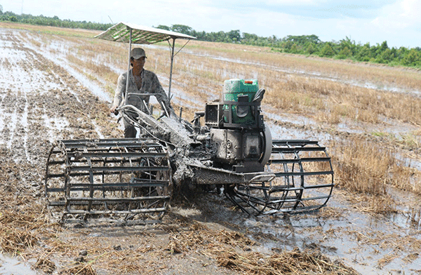 Nông dân ở xã Ðịnh Môn , huyện Thới Lai làm đất để chuẩn bị gieo trồng lúa vụ thu đông 2021.