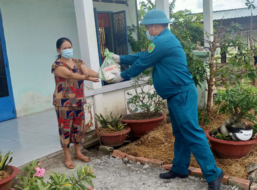 Dân quân thị trấn Thủ Thừa mua thực phẩm giao tận nhà cho người dân