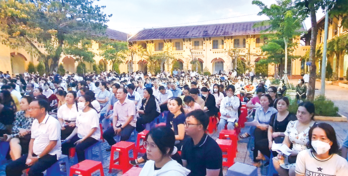 Phụ huynh, học sinh tham dự Tư vấn trực tuyến tuyển sinh vào lớp 10 THPT năm học 2024-2025 tại điểm cầu Trường THPT Châu Văn Liêm. Ảnh: CTV