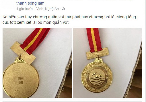 Một tay vợt phàn nàn trên Facebook khi nhận huy chương... bơi lội