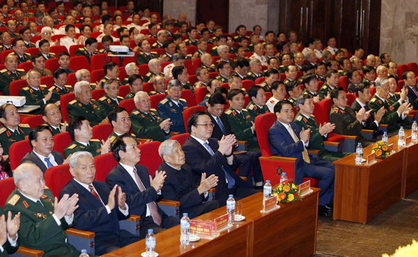 Tham dự cuộc gặp mặt có các đồng chí: Nguyên Tổng Bí thư Lê Khả Phiêu; Ủy viên Bộ Chính trị, Bí thư Thành ủy Hà Nội Hoàng Trung Hải; Ủy viên Trung ương Đảng, Phó Bí thư Thành ủy, Chủ tịch UBND thành phố Nguyễn Đức Chung; các đồng chí trong Ban Thường vụ Thành ủy, Thường trực HĐND, UBND thành phố Hà Nội và 600 đại biểu là cán bộ cấp tướng Quân đội, cán bộ cấp tướng Công an đã nghỉ hưu, nghỉ công tác.