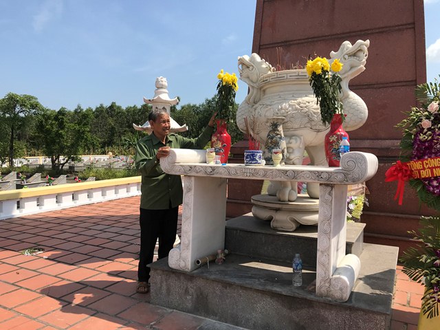 | Cựu chiến binh Trần Sáng Tỏ thắp hương, chăm sóc các phần mộ tại Nghĩa trang TNXP xã Vạn Ninh, Quảng Ninh (Quảng Bình) |