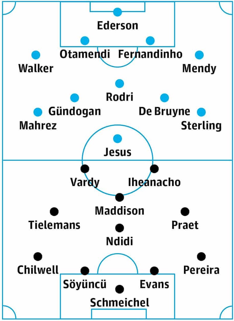 Đội hình dự kiến của Man City và Leicester. (Ảnh: The Guardian)