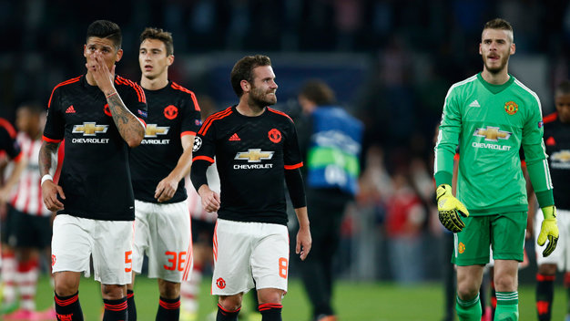 Các cầu thủ Manchester United buồn bã rời sân sau trận thua PSV - Ảnh: Reuters