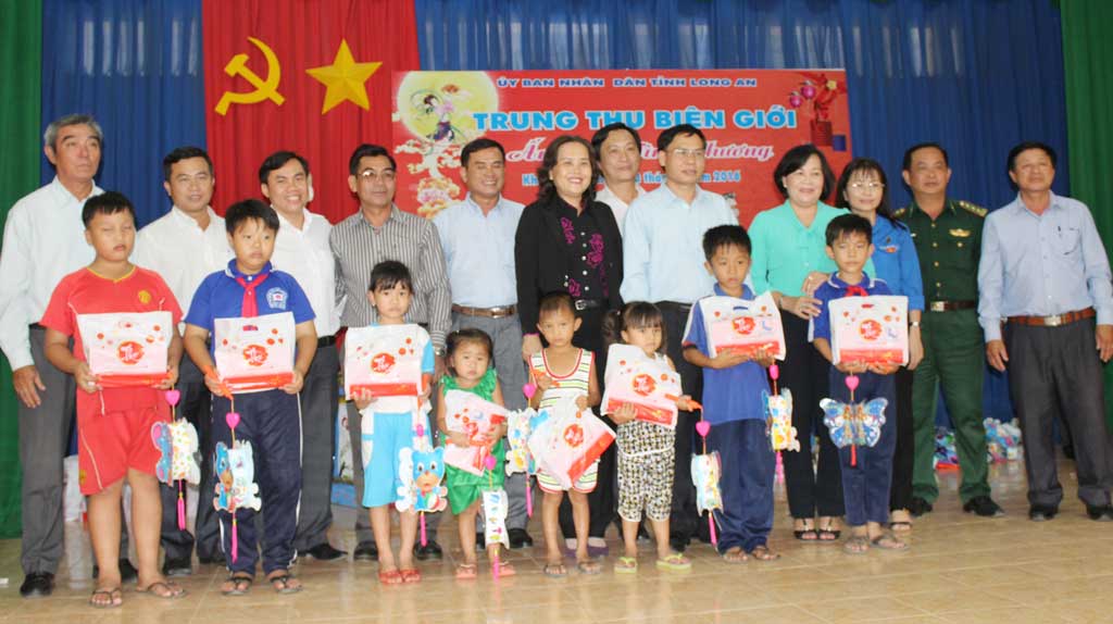 Trẻ em phấn khởi khi được nhận lồng đèn và bánh trung thuTrưởng phòng Lao động - Thương binh và Xã hội huyện Tân Hưng, tỉnh Long An - Võ Hồng Thái chia sẻ: “Huyện chuẩn bị tổ chức tặng 340 phần quà trung thu cho trẻ em nghèo, mỗi phần trị giá 350.000 đồng từ nguồn ngân sách nhà nước và xã hội hóa. Dịp này, huyện cũng trao 55 suất học bổng cho trẻ em nghèo, học giỏi, mỗi suất trị giá 1 triệu đồng. Tại các xã, thị trấn sẽ tổ chức Đêm hội trăng rằm vàhuy động tất cả trẻ em tham gia”.