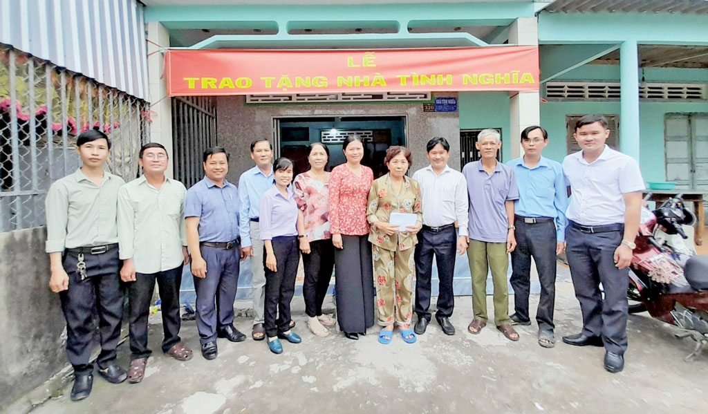 Căn nhà tình nghĩa của bà Châu Thị Cẩm Trúc (thứ 5, từ phải qua) (xã Tân Tập, huyện Cần Giuộc) được hỗ trợ tu sửa và bàn giao hơn 2 tháng nay