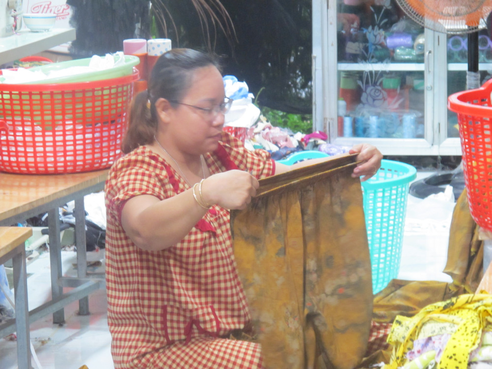 Hoàn thiện bước đầu, chị lại gặp khó khăn trong việc vận chuyển lượng vải lớn về nhà. Nhờ hỏi thăm nhiều người dân tại đó, chị quen một người chuyên vận chuyển hàng may gia công, qua đó tìm kiếm thêm nhiều đầu mối khác. Với sự kiên trì, quyết tâm không bỏ cuộc, công việc của chị dần ổn định.