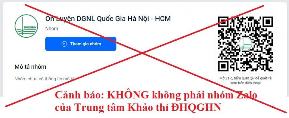 Mới đây, trên mạng xã hội xuất hiện một số nhóm sử dụng logo của ĐH Quốc gia Hà Nội, có tên "Ôn luyện thi đánh giá năng lực ĐHQG Hà Nội- TP.HCM" để ôn thi, môi giới sửa chữa thông tin lỗi của thí sinh khi đăng ký thi đánh giá năng lực. Tuy nhiên, Trung tâm Khảo thí ĐH Quốc gia Hà Nội cho biết, các nhóm này là giải mạo. Trung tâm Khảo thí ĐH Quốc gia Hà Nội không thu tiền hay nhờ bất cứ ai can thiệp được vào hệ thống khaothi.vnu.edu.vn để sửa thông tin lỗi đăng ký của thí sinh. Thí sinh tuyệt đối không liên hệ trợ giúp với các đối tượng khác về kỳ thi Đánh giá năng lực (HSA).