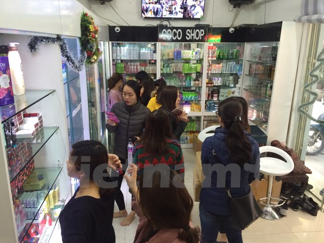 Sôi động thị trường son môi dịp 8/3. (Ảnh: Vũ Hương/Vietnam+)