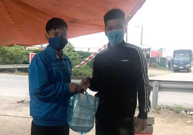 | Người dân "tiếp sức" cho tình nguyện viên và lực lượng chức năng tham gia làm nhiệm vụ tại chốt |