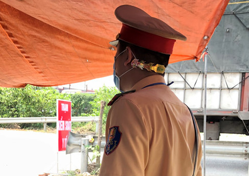 | Không chỉ được các tình nguyện viên sử dụng, chiến sỹ cảnh sát giao thông tham gia trực chốt cũng dùng "tai giả" tránh cảm giác khó chịu |