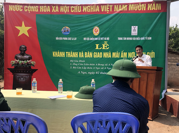 Xúc động trước những hoàn cảnh khó khăn, thiếu thốn của bà con, ông Lê Xuân Kiêu - Chủ tịch Hội CCB Sở Văn hóa và Thể thao Hà Nội, Giám đốc Trung tâm Hoạt động Văn hóa Khoa học Văn Miếu- Quốc Tử Giám thay mặt Hội viên Hội CCB Sở Văn hóa và Thể thao Hà Nội, tập thể cán bộ Trung Tâm Hoạt động Văn hóa Khoa học Văn Miếu - Quốc Tử Giám trao tặng kinh phí tài trợ phối hợp cùng với cán bộ, chiến sỹ Đồn Biên phòng Cửa khẩu Quốc tế La Lay xây nhà, trao tặng cho gia đình ông Côn Liên thôn A Đeng, xã A Ngo và bà Căn Lấp, thôn A Ngo, xã A Ngo, huyện ĐaKrông, tỉnh Quảng Trị.